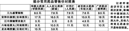 學(xué)院西路華聯(lián)大藥房的店長陳女士告訴記者,他們公司的進價可能稍高一點,所以零售價顯得高一些,不過有些藥品比別的藥店便宜。