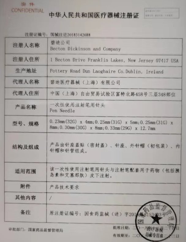 適用范圍 該一次性使用注射筆用針頭與注射筆配套用于藥物(包括胰島素和艾塞那肽)皮下注射。