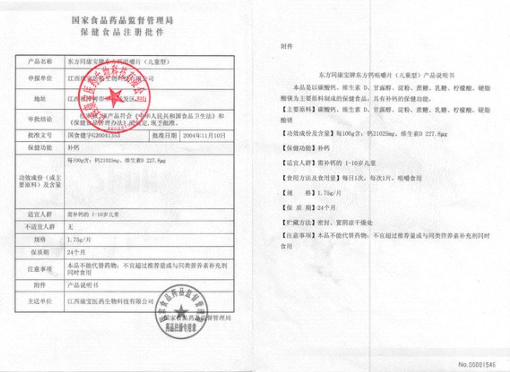 更多相關:兒童型 維D鈣 東方同康寶牌東方鈣咀嚼片 國食健字G20041353