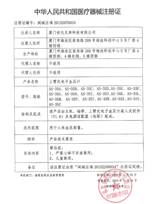 上臂式全自動電子血壓計(jì)(安亞)用于人體血壓測量,提供臨床診斷參考。產(chǎn)品參數(shù):主機(jī)外形尺寸:140mm*120mm*85mm;重量:約300g(不包括電池);環(huán)境溫度:5-40℃;相對濕度:﹤80%;大氣氣壓:860hpa-1060hpa;適用電源:DC6V AA(5號)干電池4節(jié);貯藏溫度:20-55℃;貯藏濕度﹤95%。