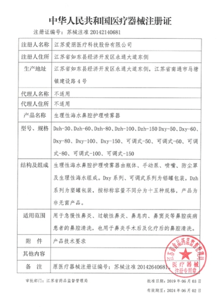 【產(chǎn)品說明】用于鼻腔干燥、鼻塞、鼻癢、流涕、鼻出血等鼻腔不適癥,鼻腔傷口表面清洗和術(shù)后創(chuàng)面的清洗,鼻腔的日常衛(wèi)生護(hù)理。