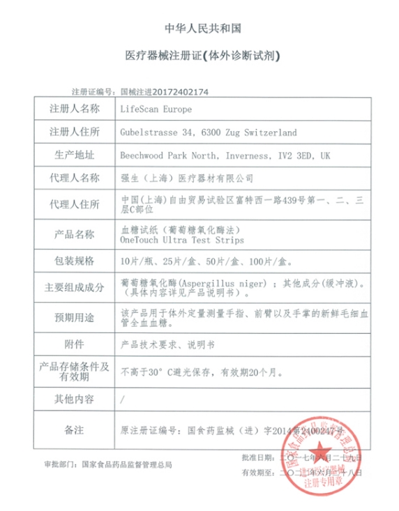 血糖試紙葡萄糖氧化酶(Aspergillus niger) ;其他成分(緩沖液)。(具體內(nèi)容詳見產(chǎn)品說明書)。產(chǎn)品有效期:不高于30℃保存,請勿冷藏,避免陽光直射和高溫,有效期20個(gè)月。附件:注冊產(chǎn)品標(biāo)準(zhǔn),產(chǎn)品說明書。該產(chǎn)品用于體外定量測量手指、前臂以及手掌的新鮮毛細(xì)血管全血血糖。