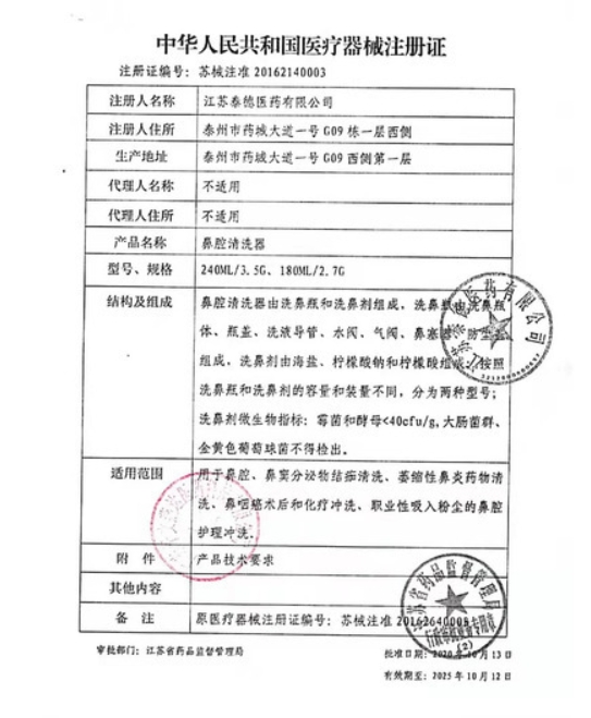 鼻可樂鼻腔清洗器兒童裝避免使用過冷或過熱的水配制洗鼻液。嚴禁使用不含本洗鼻劑的純水洗鼻,以避免嗆水及造成鼻粘膜細胞水腫。碘對鼻粘膜有破壞作用,嚴禁使用食鹽(含碘)代替本洗鼻劑。避免用純鹽水洗鼻子,以免引起鼻腔干燥,破壞鼻粘膜。洗鼻時避免吞咽或說笑?;加兄卸谆蚱渌r請不要洗鼻子,待耳病好了再洗。每次用后用干凈水沖洗洗鼻器,以避免殘留的洗液干結(jié)而堵塞液閥或氣閥。洗鼻器是個人專用品,不要共用一個洗鼻器,以避免交叉感染。有習慣性鼻出血的人要經(jīng)過醫(yī)生檢查后進行鼻腔清洗。首次兒童使用時請在家長指導下進行。