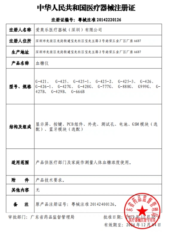 G-426型血糖儀供醫(yī)療部門及家庭作測(cè)量人體血糖濃度使用。產(chǎn)品參數(shù):測(cè)量范圍:1.17~41.7mmol/l;測(cè)量時(shí)間:10秒;血樣量:1.5微升;電池壽命:可測(cè)量超過(guò)1000次。