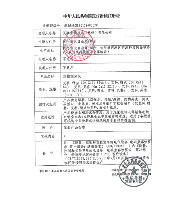 艾科.靈睿(On Call EZII)血糖測(cè)試儀的產(chǎn)品性能結(jié)構(gòu)及組成:產(chǎn)品由電路板、LCD顯示、按鈕/按鍵、結(jié)構(gòu)外殼、測(cè)試條插口、電池蓋、校準(zhǔn)芯片插口組成。產(chǎn)品適用范圍:產(chǎn)品配套血糖測(cè)試條使用,用于定量檢測(cè)人體新鮮毛細(xì)血管全血和/或靜脈全血中的葡萄糖濃度,適用于各級(jí)醫(yī)療機(jī)構(gòu)專(zhuān)業(yè)檢測(cè)或供糖尿病患者自我血糖監(jiān)測(cè)。