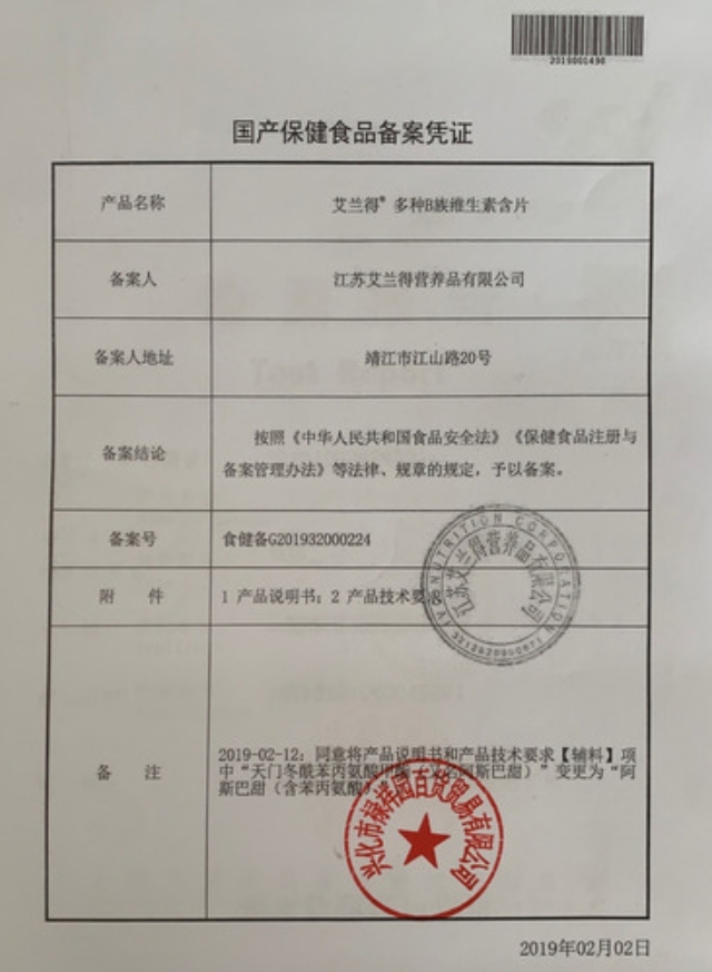 艾蘭得多種B族維生素含片(修正)保健功能:補充多種B族維生素;適宜人群:需要補充多種B族維生素的成人;不適宜人群:3歲以下人群及孕婦、乳母。本品不能代替藥物。