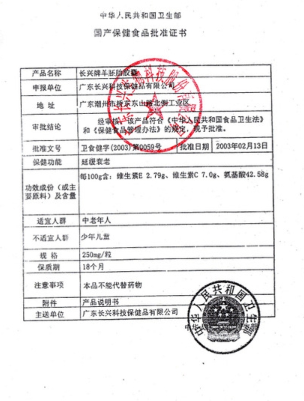 長興牌羊胚胎膠囊(星際元)保健功能:延緩衰老;適宜人群:中老年人;不適宜人群:少年兒童。