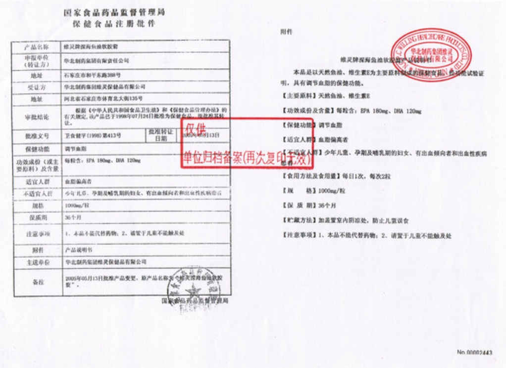 維靈牌深海魚(yú)油軟膠囊(欣康健)保健功能:調(diào)節(jié)血脂;適宜人群:血脂偏高者;不適宜人群:少年兒童、孕期及哺乳期的婦女、有出血傾向者和出血性疾病患者。每日1次,每次2粒。每粒含:EPA 180mg、DHA 120mg。加蓋置室內(nèi)陰涼處,防止兒童誤食。