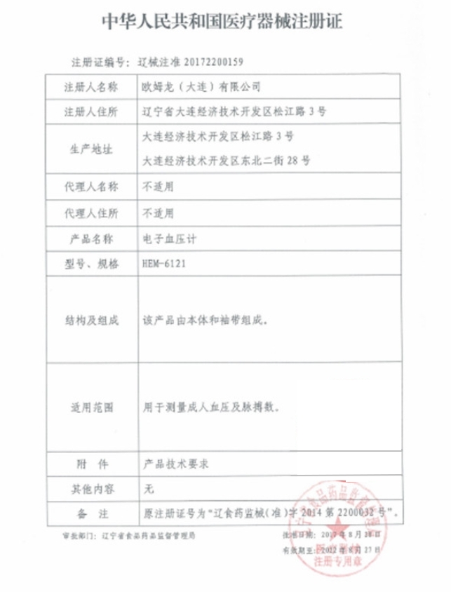 電子血壓計(歐姆龍)該產(chǎn)品由本體和袖帶組成。主要性能:顯示方法:數(shù)字式顯示方式,測量范圍:壓力0~299mmHg(0~39.9kPa),脈搏數(shù):40次/分~180次/分,精度壓力:±3mmHg(±0.4kPa),脈搏數(shù):±5%。