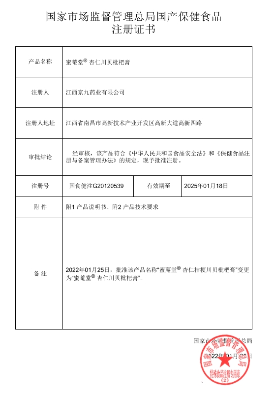 江西京九杏仁川貝枇杷膏換新包裝了,新包裝產品名稱為“蜜菴堂杏仁川貝枇杷膏”,舊包裝產品名稱為“蜜菴堂杏仁桔梗川貝枇杷膏”。里面的杏仁川貝枇杷膏質量保證,新舊包裝隨機發(fā)貨