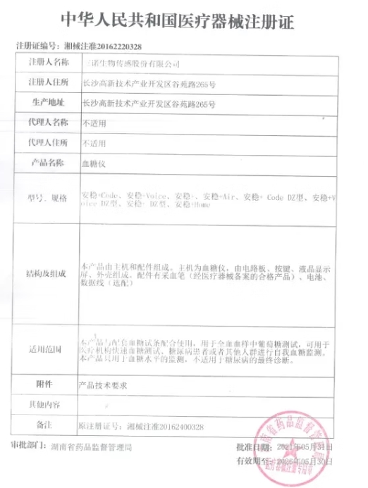 三諾安穩(wěn)+血糖儀與配套血糖試條配合使用。用于全血血樣中葡萄糖測試,可用于醫(yī)療機(jī)構(gòu)快速血糖測試、糖尿病患者或者其他人群進(jìn)行自我血糖監(jiān)測。本產(chǎn)品只用于血糖水平的監(jiān)測,不適用于糖尿病的最終診斷。