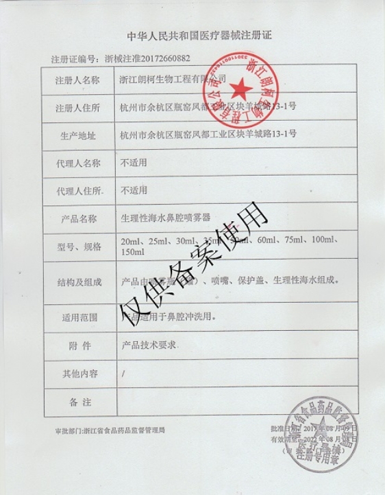 雷特伯恩生理性海水鼻腔噴霧器(鼻腔噴霧器)適用于鼻腔沖洗用。產(chǎn)品由噴霧瓶(罐)、噴嘴、保護(hù)蓋、生理性海水組成。產(chǎn)品PH值:6.5-8.0 ;大腸菌群:不得檢出 ;金黃色葡萄球菌:不得檢出;產(chǎn)品應(yīng)無(wú)細(xì)胞毒性、無(wú)粘膜刺激反應(yīng)、應(yīng)無(wú)急性經(jīng)口毒性、應(yīng)無(wú)遲發(fā)型超敏反應(yīng)。