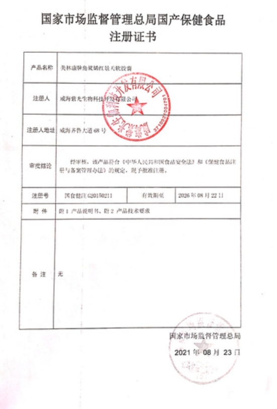角鯊烯紅景天軟膠囊(修正)保健功能:提高缺氧耐受力;適宜人群:處于缺氧環(huán)境者;不適宜人群:少年兒童、孕婦、乳母。每日2次,每次2粒,口服。本品不能代替藥物;本品無補(bǔ)氧作用。主要原料為紅景天提取物、角鯊烯、磷脂、蜂蠟、明膠、純化水、甘油、焦糖色、二氧化鈦。