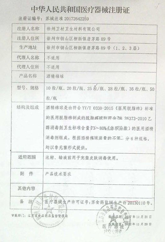 雅思酒精棉球由符合YY/T 0330-2015《醫(yī)用脫脂棉》標(biāo)準(zhǔn)的醫(yī)用脫脂棉制成的脫脂棉球和符合GB 26373-2010乙醇消毒劑衛(wèi)生標(biāo)準(zhǔn)含量73~80%(體積分?jǐn)?shù))的醫(yī)用酒精消毒劑組成。根據(jù)本品裝量的不同,分6種規(guī)格,均以非無菌形式提供。