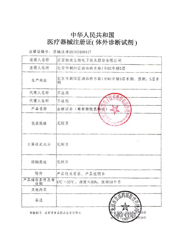 怡成血糖試條(葡萄糖脫氫酶法)用于定量檢測新鮮毛細(xì)血管全血中的葡萄糖濃度。檢測部位可以是:手指、手掌和手臂。若使用機(jī)外添加血樣的方式,也可使用含有肝素鋰、肝素銨或EDTA抗凝劑的靜脈血以及動(dòng)脈血和新生兒血進(jìn)行檢測。