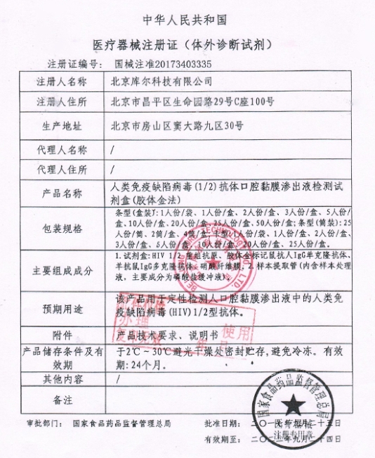 宅測人類免疫缺陷病毒(1/2)抗體口腔黏膜滲出液檢測試劑盒(膠體金法)用于定性檢測人口腔黏膜滲出液中的人類免疫缺陷病毒(HIV)1/2型抗體。
