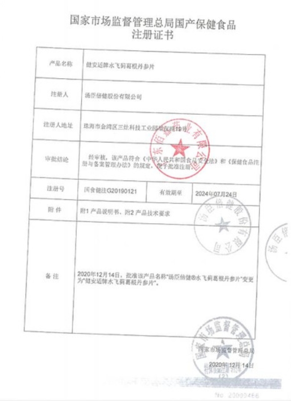 健安適牌水飛薊葛根丹參片(湯臣倍健)保健功能:對化學性肝損傷有輔助保護功能;適宜人群:有化學性肝損傷危險者;不適宜人群:少年兒童、孕婦、乳母。每日2次,每次2片,口服。本品不能代替藥物;適宜人群外的人群不推薦食用本產品。
