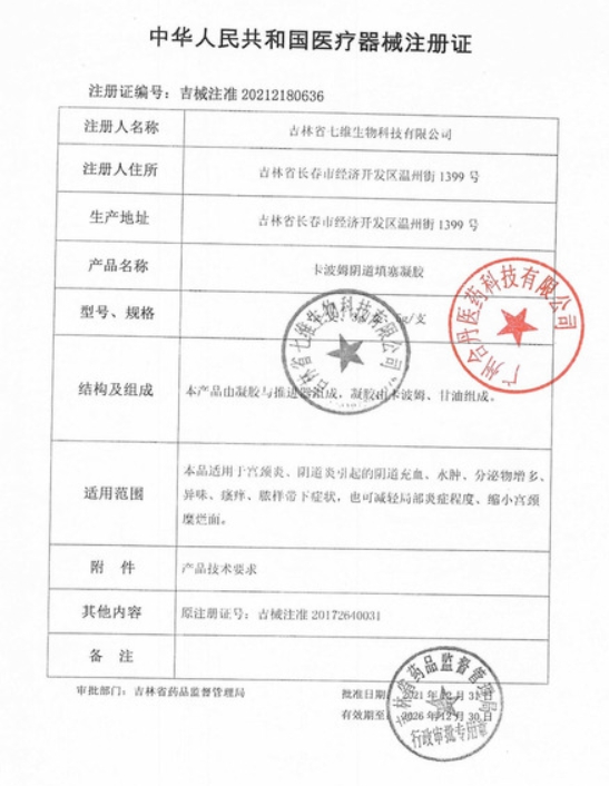卡波姆陰道填塞凝膠(國(guó)創(chuàng)/阿利美)適用于宮頸炎、陰道炎引起的陰道充血、水腫、分泌物增多、異味、瘙癢、膿樣帶下癥狀,也可減輕局部炎癥程度、縮小宮頸糜爛面。過(guò)敏者禁用,未成年少女、處女禁用,孕婦慎用,經(jīng)期勿用。