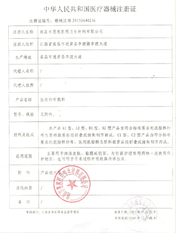 安其生醫(yī)用紗布敷料以脫脂棉紗布為主要原料,裁剪后經(jīng)折疊而成。供醫(yī)療機構(gòu)和家庭使用。主要用于清潔皮膚、粘膜或創(chuàng)面,與創(chuàng)面護理常用藥物一起使用保護創(chuàng)面,也可用于手術(shù)過程中吸收體內(nèi)滲出液。產(chǎn)品包裝破損,請勿使用。本品只限一次性使用,用后銷毀。