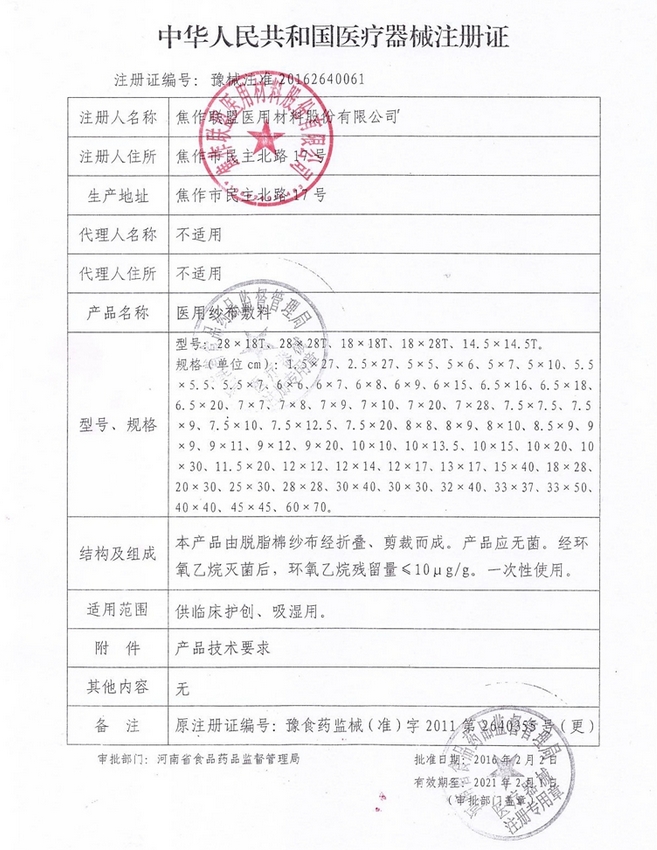 聯(lián)盟醫(yī)用紗布敷料由脫脂棉紗布經(jīng)折疊、剪裁而成。產(chǎn)品應(yīng)無菌。經(jīng)環(huán)氧乙烷滅菌后,環(huán)氧乙烷殘留量≤10μg/g。一次性使用。供臨床護(hù)創(chuàng)、吸濕用。打開包裝,取出產(chǎn)品使用。包裝破損禁止使用。