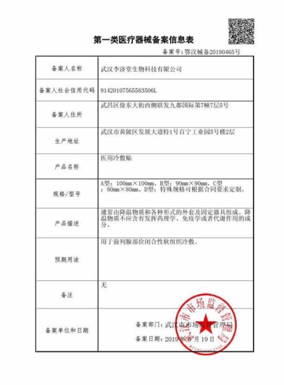 醫(yī)用冷敷貼(恒脈)用于前列腺部位閉合性軟組織冷敷。使用時(shí)先擦凈患處,沿缺口撕開(kāi)包裝,取出貼劑,揭開(kāi)防粘膜,將凝膠面緊貼于需冷敷部位,輕輕按壓,每次4-6小時(shí)??筛鶕?jù)需要剪成相應(yīng)大小使用;為保證效果,開(kāi)封后請(qǐng)盡快使用。皮膚破損及潰瘍處禁用。