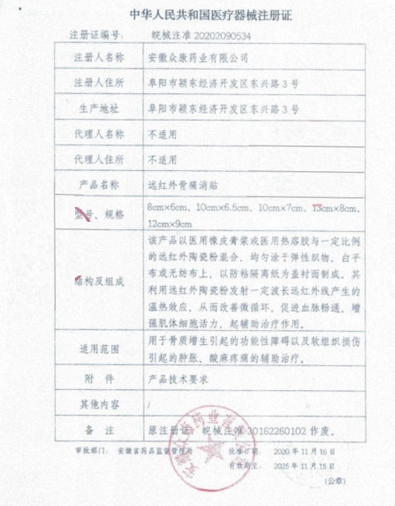 萬極遠(yuǎn)紅外骨痛消貼以醫(yī)用橡皮膏漿或醫(yī)用熱溶膠與一定比例的遠(yuǎn)紅外陶瓷粉混合,均勻涂于彈性織物、白平布或無紡布上,以防粘隔離紙為蓋襯而制成。產(chǎn)品用于骨質(zhì)增生引起的功能性障礙以及軟組織損傷引起的腫脹、酸麻疼痛的輔助治療。