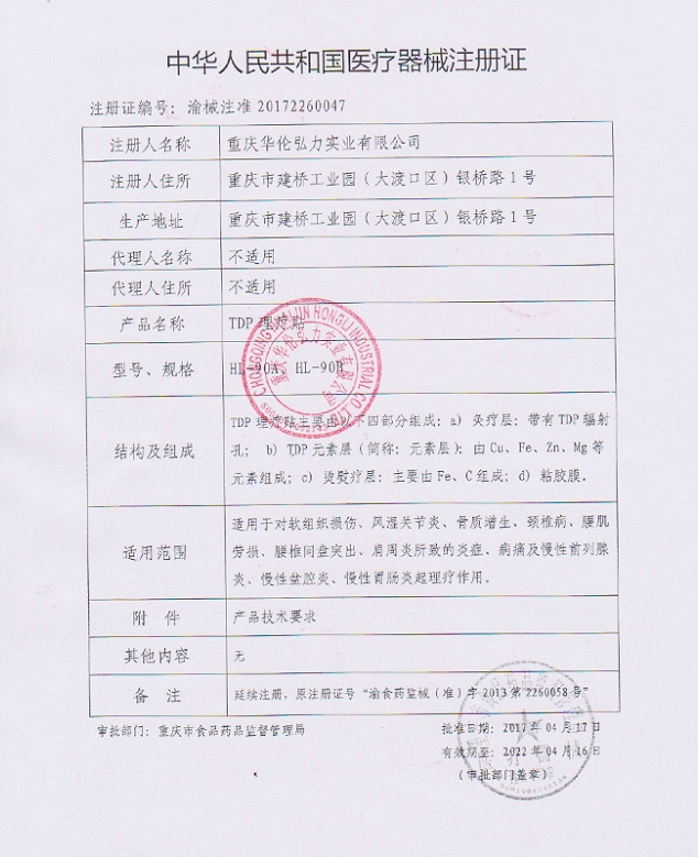 注冊證號:渝械注準20172260047批件 生產(chǎn)廠家:重慶華倫弘力生物技術(shù)股份有限公司