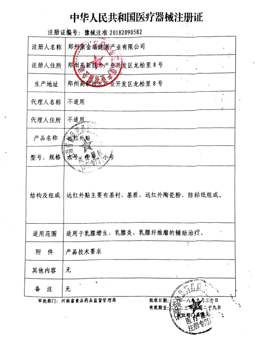 乳雙青遠紅外帖主要有基襯、基質、遠紅外陶瓷微粉、防粘紙組成,適用于乳腺增生、乳腺炎、乳腺纖維瘤的輔助治療。皮膚過敏者、皮膚破損或潰爛處禁用。孕婦及哺乳期婦女請在醫(yī)師指導下使用。