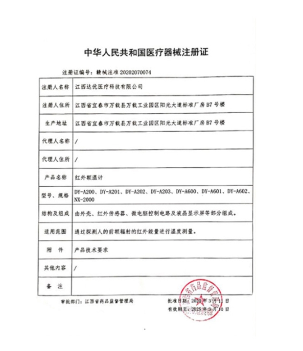 達(dá)優(yōu)紅外額溫計(jì)(NX-2000)通過(guò)探測(cè)人的前額輻射的紅外能量進(jìn)行溫度測(cè)量。本品由外殼、紅外傳感器、微電腦控制電路及液晶顯示屏等部分組成。