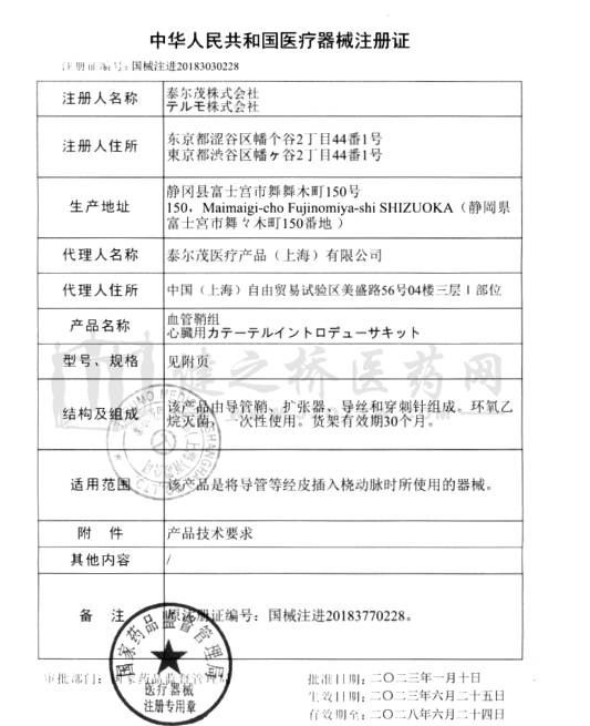 代理人名稱 泰爾茂醫(yī)療產品(上海)有限公司