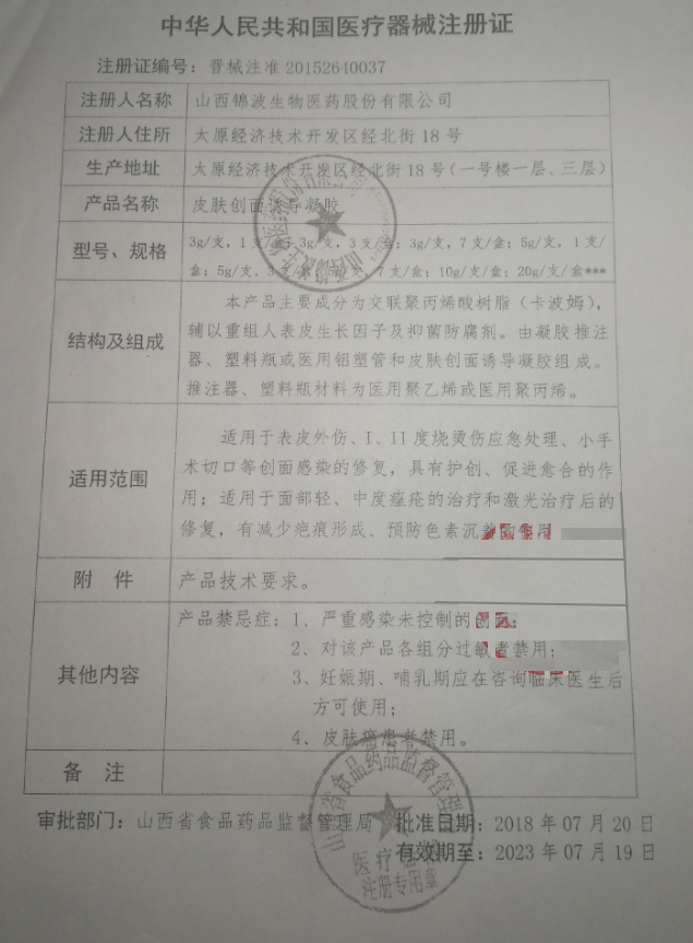 更多相關(guān):金波 皮膚創(chuàng)面誘導(dǎo)凝膠 錦虹
