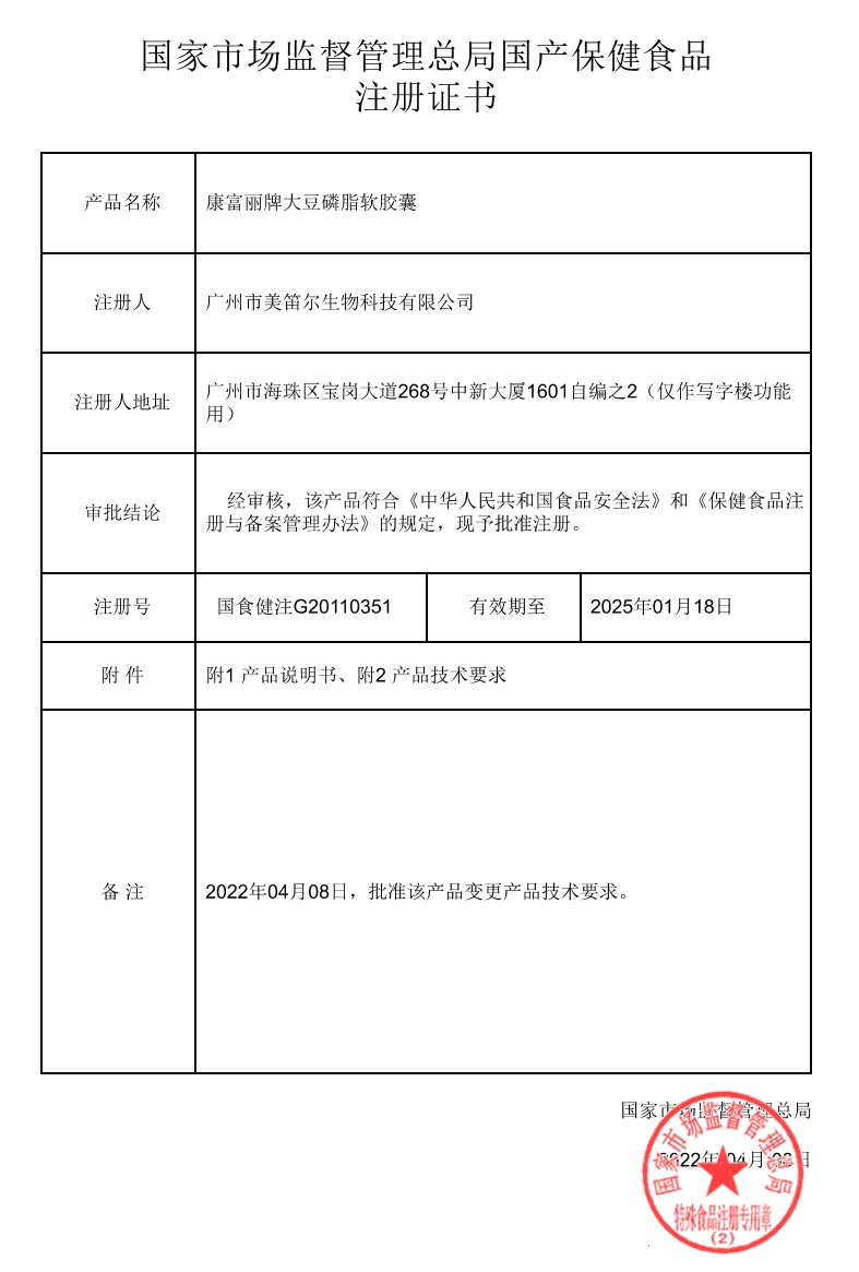 康富麗牌大豆磷脂軟膠囊(朗維康)保健功能:輔助降血脂;適宜人群:血脂偏高者;不適宜人群:少年兒童、孕婦、乳母。每日2次,每次2粒,口服。