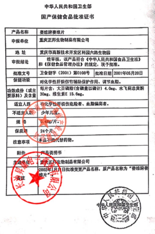 賽維牌賽維片(百維奇)保健功能:對(duì)化學(xué)性肝損傷有輔助保護(hù)作用、調(diào)節(jié)血脂;適宜人群:有化學(xué)性肝損傷危險(xiǎn)者、血脂偏高者;不適宜人群:少年兒童。本品不能代替藥物。