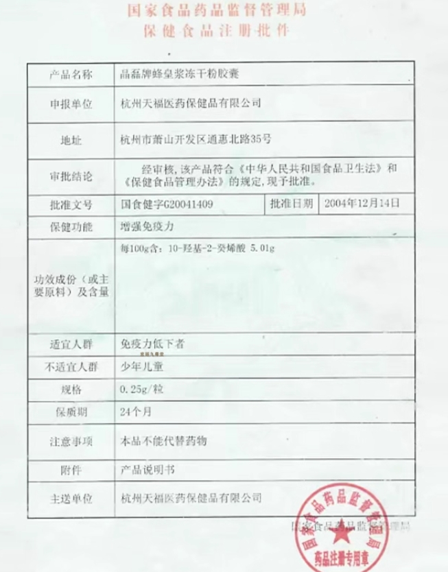更多相關(guān):人蜂和 蜂皇漿凍干粉膠囊 晶磊牌蜂皇漿凍干粉膠囊
