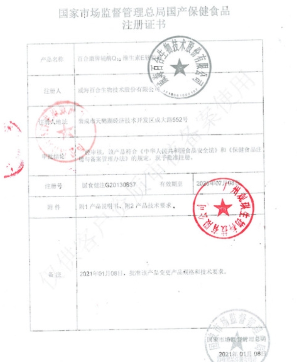 更多相關(guān):威海百合 健安喜 百合康牌輔酶Q10維生素E軟膠囊
