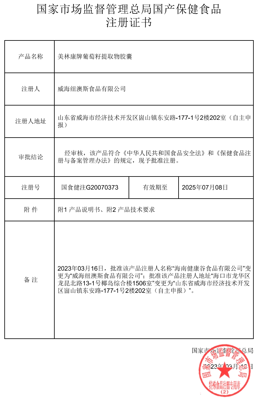 倍臻致美林康牌葡萄籽提取物膠囊保健功能:抗氧化;適宜人群:中老年人;不適宜人群:少年兒童、孕婦、乳母。每日1次,每次2粒,口服。本品不能代替藥物;適宜人群外的人群不推薦食用本產(chǎn)品。