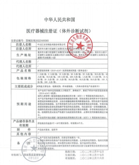 注冊證號:國械注準(zhǔn)20223400365批件 生產(chǎn)廠家:中元匯吉生物技術(shù)股份有限公司