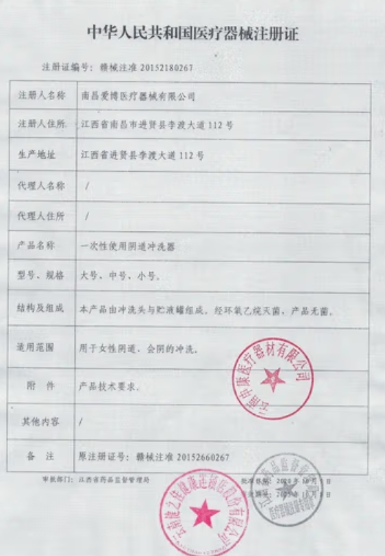 更多相關(guān):一次性使用陰道沖洗器 群杰 南昌愛博醫(yī)療