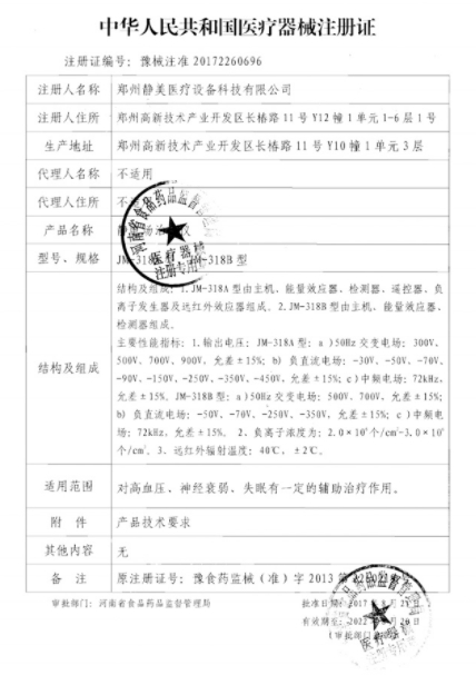 靜電場治療儀(新屋熊)對高血壓、神經(jīng)衰弱、失眠有一定的輔助治療作用。JM-318A型由主機(jī)、能量效應(yīng)器、檢測器、遙控器、負(fù)離子發(fā)生器及遠(yuǎn)紅外效應(yīng)器組成。