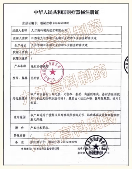 潯藥遠紅外傷痛貼(關(guān)節(jié)貼Ⅰ)適用于緩解因風寒濕邪所致的關(guān)節(jié)、肌肉疼痛及軟組織挫傷所致之疼痛。本產(chǎn)品由基襯、珠光膜、無紡布、基質(zhì)、離型紙組成。