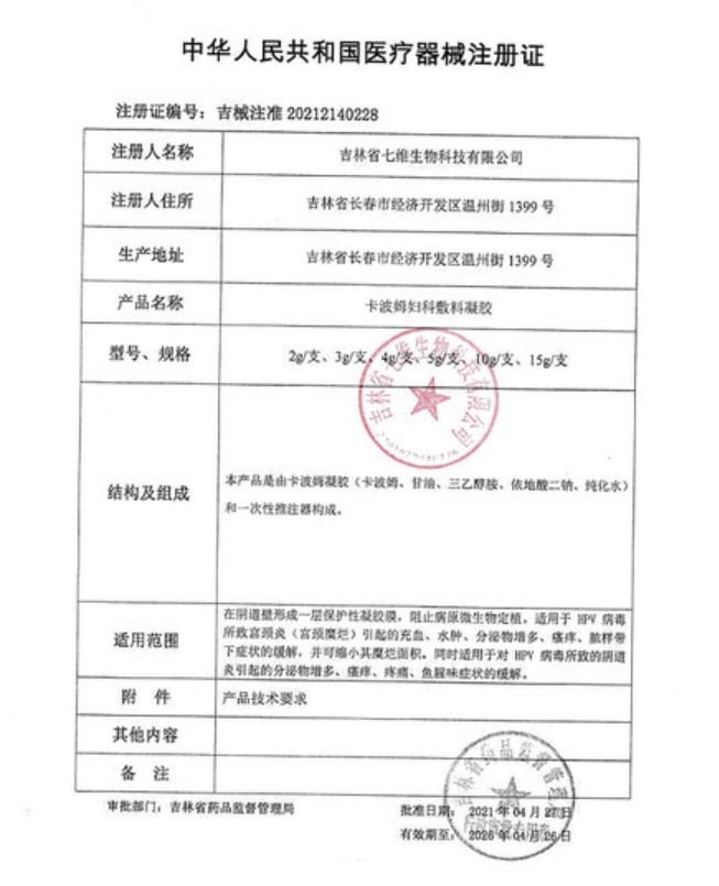 更多相關(guān):卡波姆婦科敷料凝膠 森普愛康 吉林省七維生物