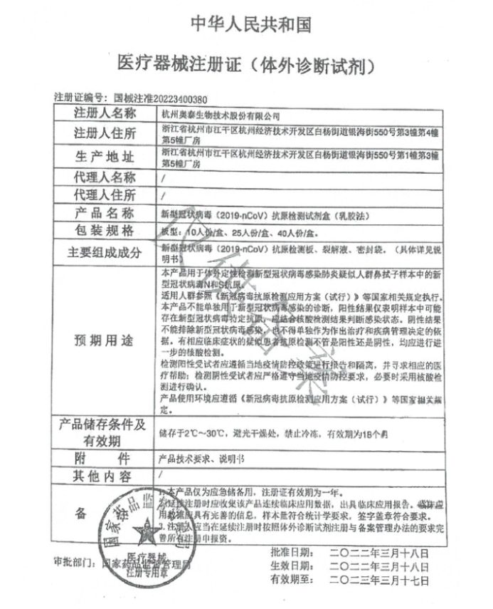 善士泰新型冠狀病毒(2019-nCoV)抗原檢測試劑盒(乳膠法)主要組成成分:新型冠狀病毒(2019-nCoV)抗原檢測板、裂解液、密封袋。(具體詳見說明書)。原包裝應儲存于2℃-30℃,避光干燥處,禁止冷凍或在已過有效期后使用。