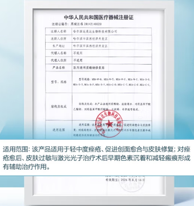 醫(yī)用透明質(zhì)酸鈉修復貼(Cofoe可孚)適用于輕中度痤瘡、促進創(chuàng)面愈合與皮膚修復;對痤瘡愈后、皮膚過敏與激光光子治療術(shù)后早期色素沉著和減輕瘢痕形成有輔助治療作用。