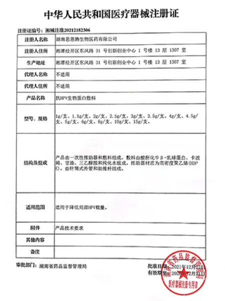抗HPV生物蛋白敷料(潔普利康/植術)由一次性推助器和敷料組成,敷料由酸酐化牛β-乳球蛋白、卡波姆、甘油、三乙醇胺和純化水組成。推助器材質為高密度聚乙烯(HDPE),由針筒式外管和助推桿組成。適用于降低局部HPV載量。