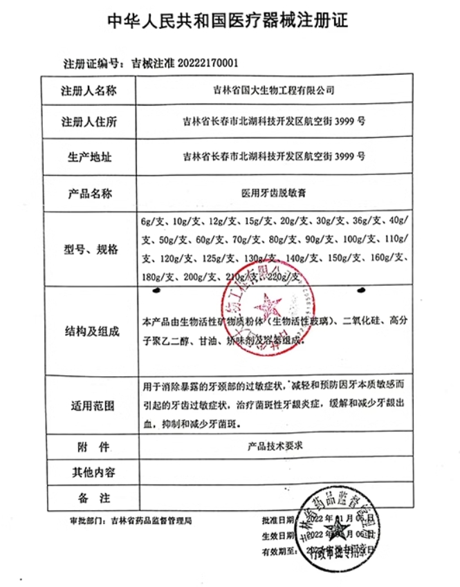 更多相關(guān):國(guó)大生物 醫(yī)用牙齒脫敏膏