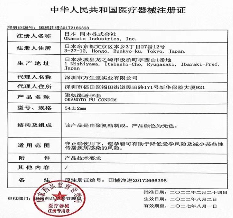 岡本0.01聚氨酯避孕套是由聚氨酯制成。產(chǎn)品顏色為無色。由水性聚氨酯乳液制成,為薄膜套狀物,開口有卷邊,頭部有儲精囊不含殺精成分。套狀部分為光面,添加二甲基硅油作為潤滑劑。為非無菌醫(yī)療器械。