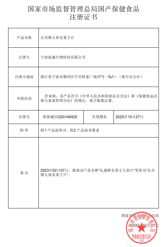 諾萊維長興牌人參韭菜子片保健功能:本品經(jīng)動(dòng)物實(shí)驗(yàn)評(píng)價(jià),具有增強(qiáng)免疫力、緩解體力疲勞的保健功能;適宜人群:免疫力低下者、易疲勞者;不適宜人群:少年兒童、孕婦、乳母。每日1次,每次2片,吞服。