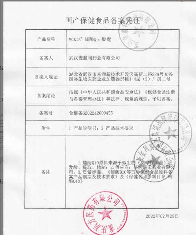 北京同仁堂MCKIN輔酶Q10膠囊保健功能:增強(qiáng)免疫力和抗氧化;適宜人群:成人;不適宜人群:少年兒童、孕婦、乳母。每日1次,每次1粒,食用方法:口服。本品不能代替藥物;適宜人群外的人群不推薦食用本產(chǎn)品;服用治療藥物的人群食用本品時(shí)應(yīng)向醫(yī)生咨詢(xún)。