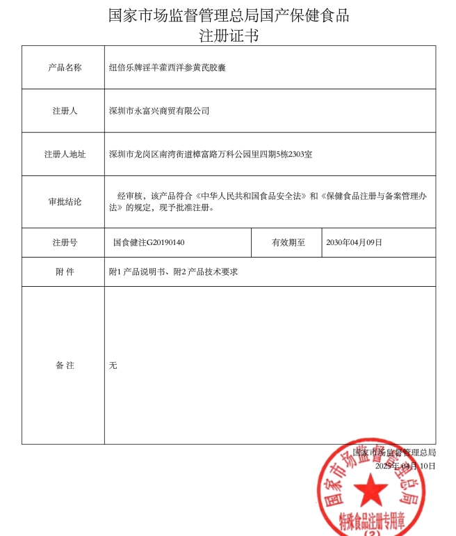 善贊紐倍樂牌淫羊藿西洋參黃芪膠囊保健功能:本品經(jīng)動(dòng)物實(shí)驗(yàn)評(píng)價(jià),具有增強(qiáng)免疫力的保健功能;適宜人群:免疫力低下者;不適宜人群:少年兒童、孕婦、乳母。每日1次,每次3粒,口服。本品不能代替藥物;適宜人群外的人群不推薦食用本產(chǎn)品。