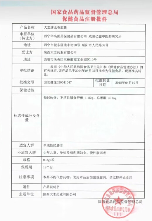 順變大志牌玉香膠囊保健功能:減肥;適宜人群:?jiǎn)渭冃苑逝终?;不適宜人群:少年兒童、孕婦及哺乳期婦女、慢性腹瀉者。每日3次,每次3粒。本品不能代替藥物:食用本品后如出現(xiàn)腹瀉,請(qǐng)立即停止食用。